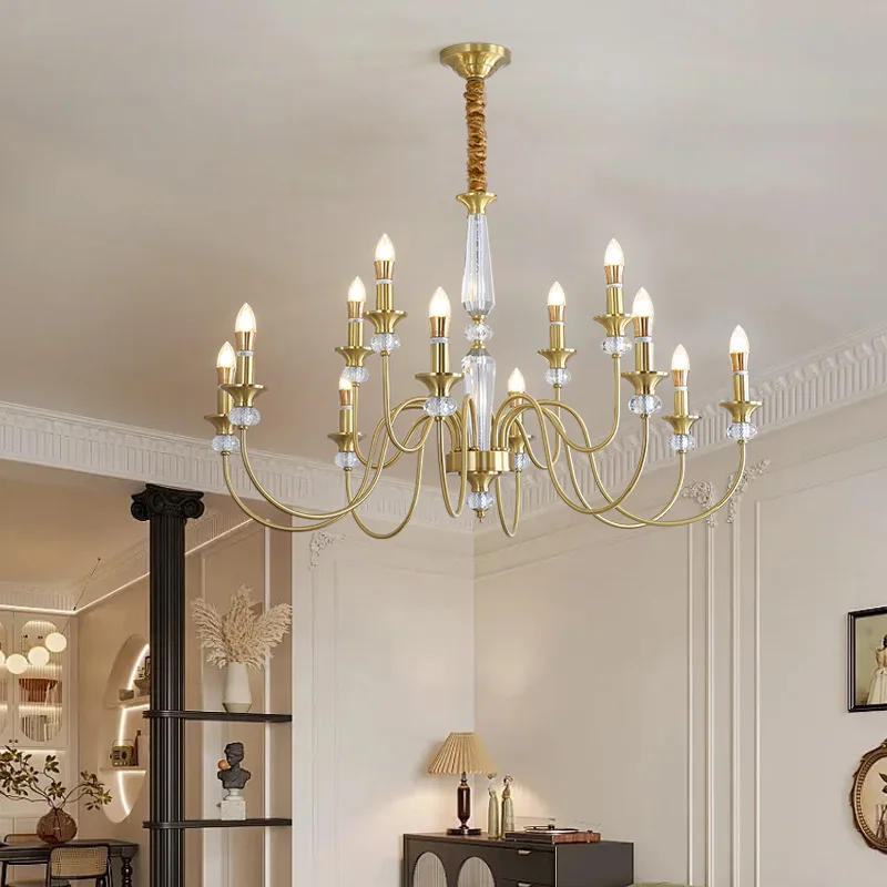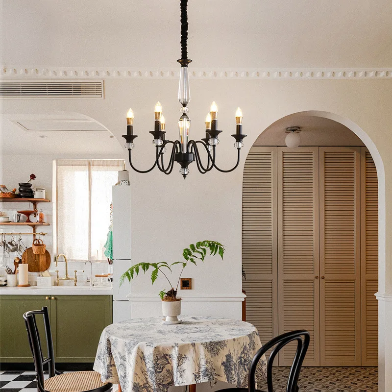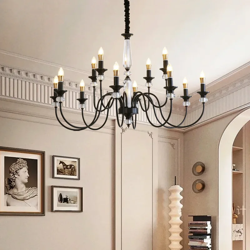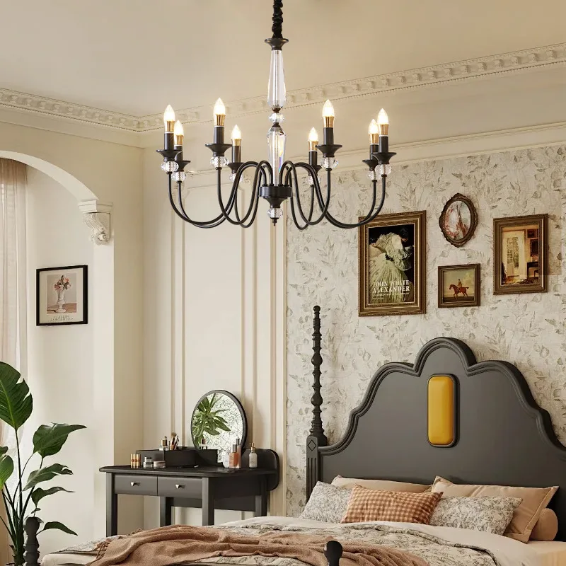 JACKSUN Black Crystal Chandelier French Style Pendant Light Luxury for Living Room Master Bedroom Retro Candle Design
